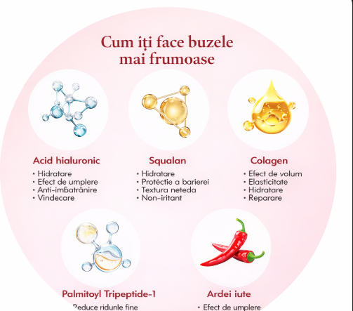 ✔️ Crește vizibil volumul buzelor în 5–10 minute.